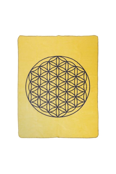 Biophotonen-Kuscheldecke Blume des Lebens MARINE/YELLOW 200 cm x 150 cm